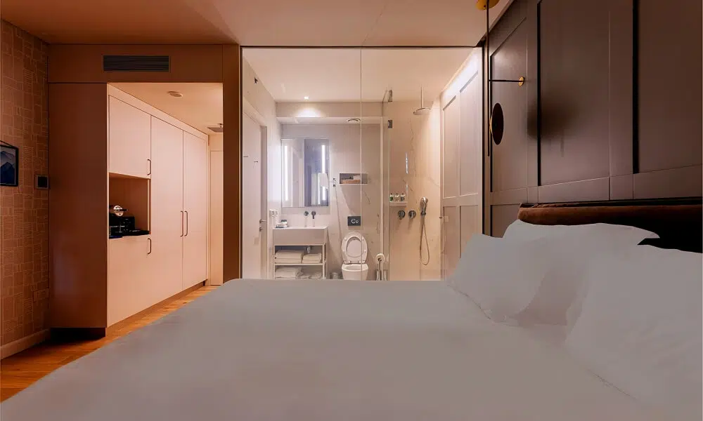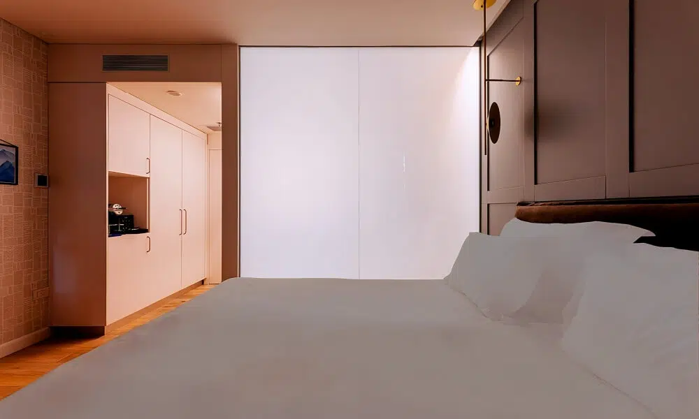 Las instalaciones del hotel Película inteligente en todas las ventanas de los cuartos de los huéspedes. Esto permite que el cristal cambie de transparente a opaco con el toque de un botón, dando a los huéspedes un control total sobre su privacidad. Si desean tener una visión clara de los arredores o un espacio privado, los usuarios pueden ajustar la transparencia del cristal al instante.
